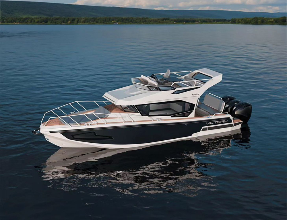 Victory A11 FLY — вызов условностям как во внешнем виде, так и в комфорте на борту. А11 Fly — открывает мир для безопасных, длительных путешествий с комфортом, даже в непредсказуемую погоду. Лодка оснащена просторным флайбриджем. На открытой площадке над салоном размещён второй пост управления, и здесь достаточно места для размещения нескольких гостей. С флайбриджа открываются восхитительные виды водных просторов и прибрежных пейзажей.