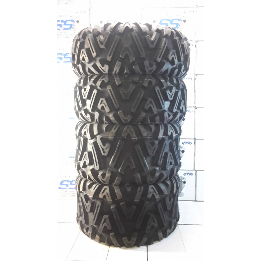 Передние шины: 27x9-12 Задние шины: 27x11-12. Радиальный рисунок протектора делает управление транспортом с такими шинами простым и комфортным, а специальная конструкция бортов покрышки повышает уровень ее защиты от боковых проколов во время движения на квадроцикле.
