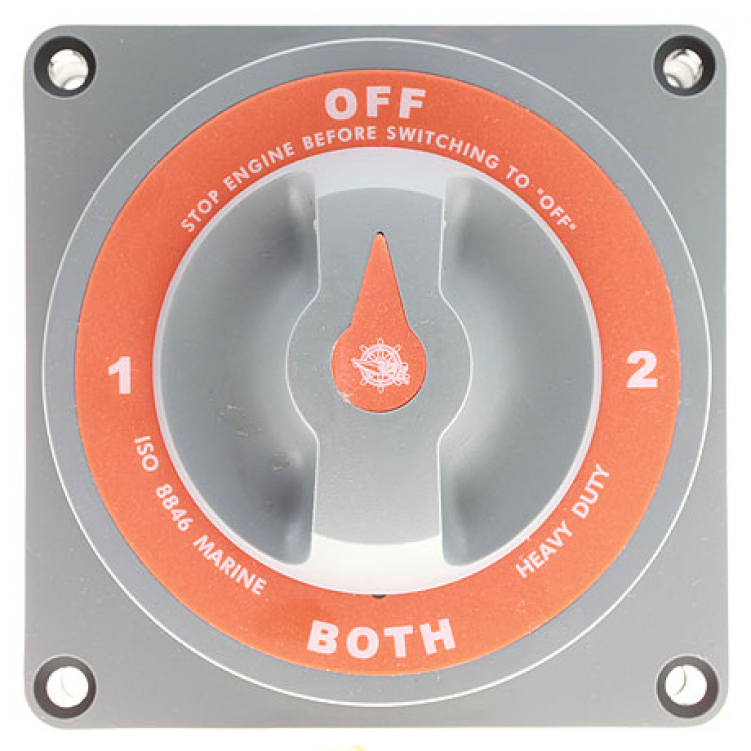 Переключатель для коммутации аккумуляторных батарей. Имеет четыре позиции: аккумулятор № 1, аккумулятор № 2, оба аккумулятора включены, оба аккумулятора выключены.