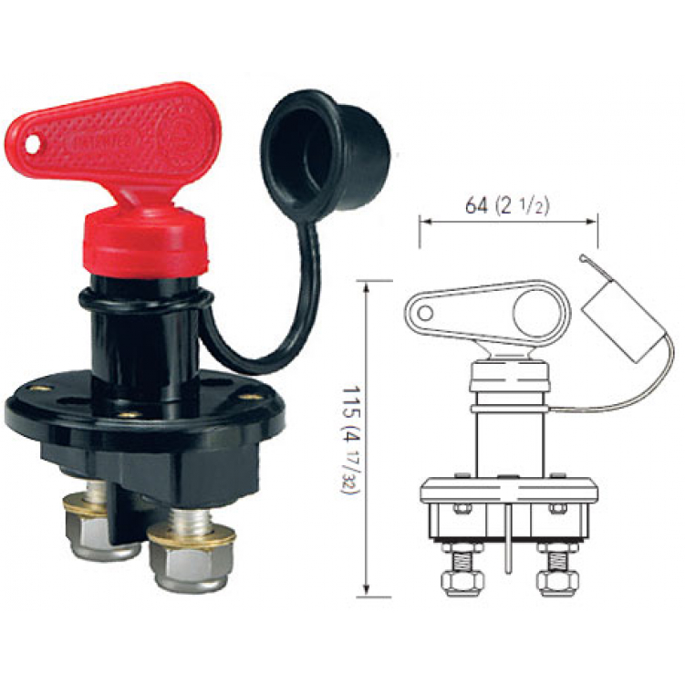 Выключатель массы в пластиковом корпусе. Предотвращает разряд аккумуляторов через возможные паразитные электрические цепи во время долгой стоянки судна. Может использоваться для аварийного обесточивания бортовой сети. Отлично сочетается с коробом «Fantasy mini».