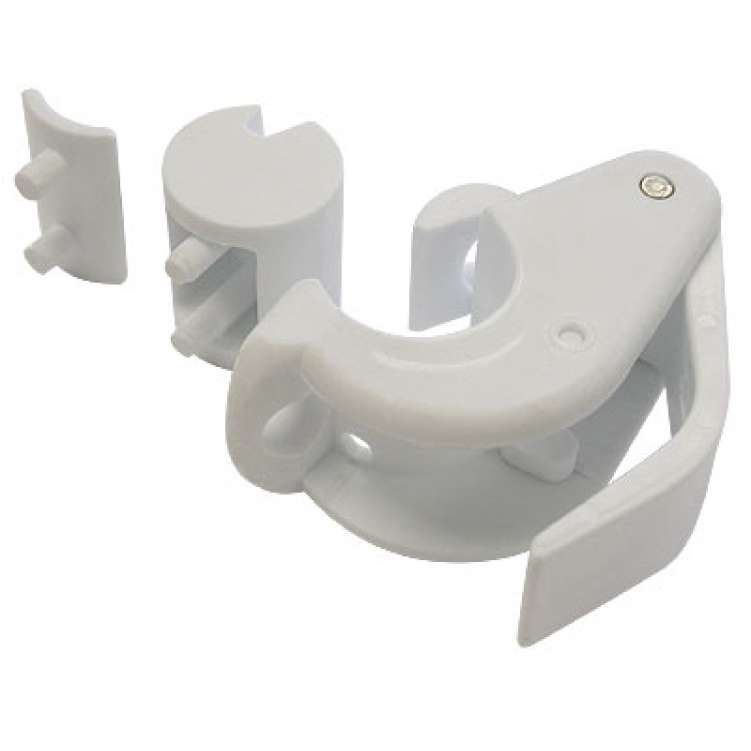 Зажим из белого пластика. Крепится на трубу релинга диаметром 22-25 мм (или леерный трос диаметром 6-8 мм с помощью прилагаемого адаптера). Позволяет легко и быстро одним движением закрепить трос кранца (рекомендуемый диаметр - 8 мм), а также регулировать его длину. Цена за штуку.