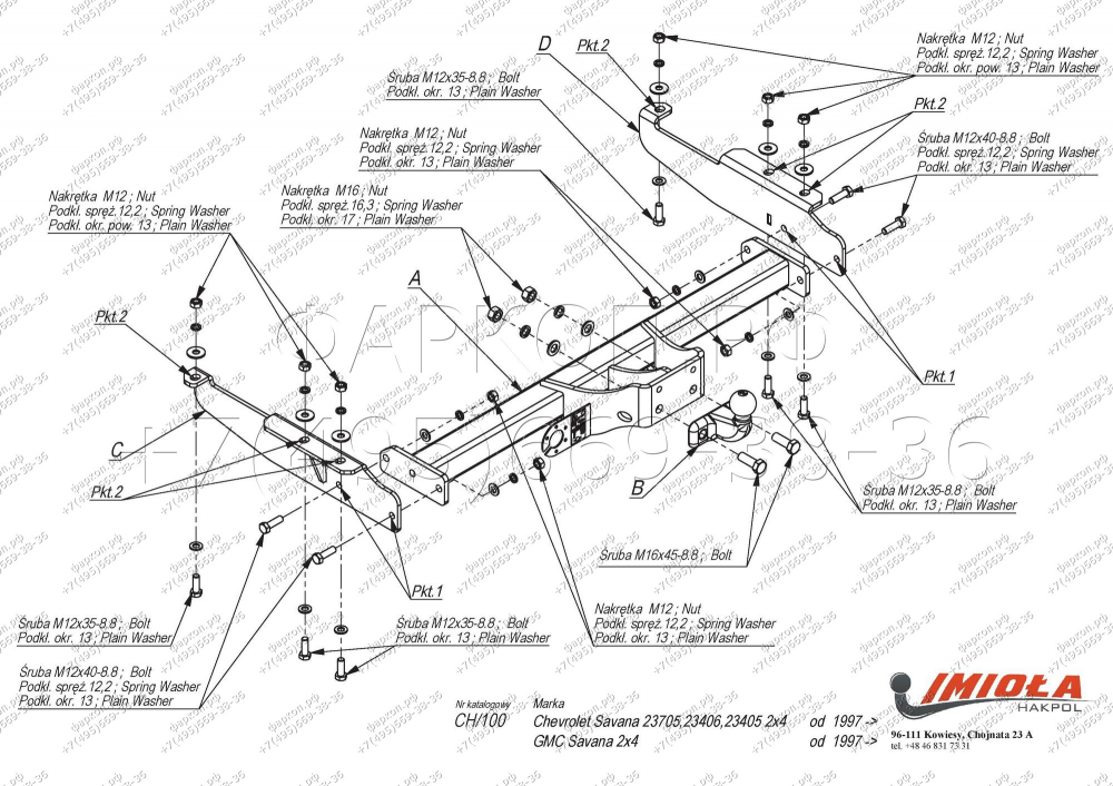 Фаркоп Chevrolet Express 1996-2017, GMC Savana 1996-2017 - CH.100 IMIOLA