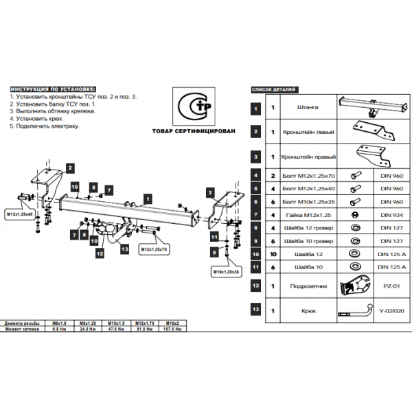 Фаркоп Haval H2 2015-2020 - 93105-E Motodor