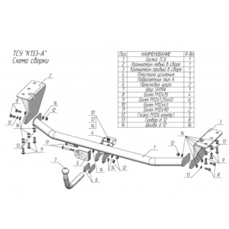Фаркоп Kia Carnival 2014-2021 - K133-A Лидер-плюс