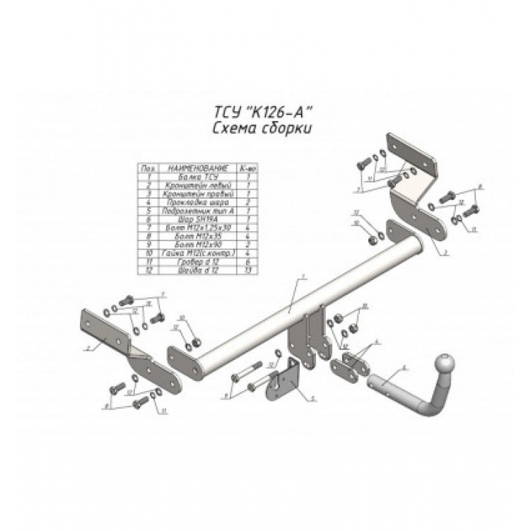 Фаркоп Kia Optima 2016-2020 - K126-A Лидер-плюс