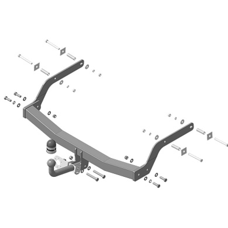 Фаркоп с оцинкованным шаром на Renault Arkana 2019- без выреза в бампере. Тип шара: A. Нагрузки: 1500/75 кг, масса фаркопа 16,5 кг (без электрики в комплекте)