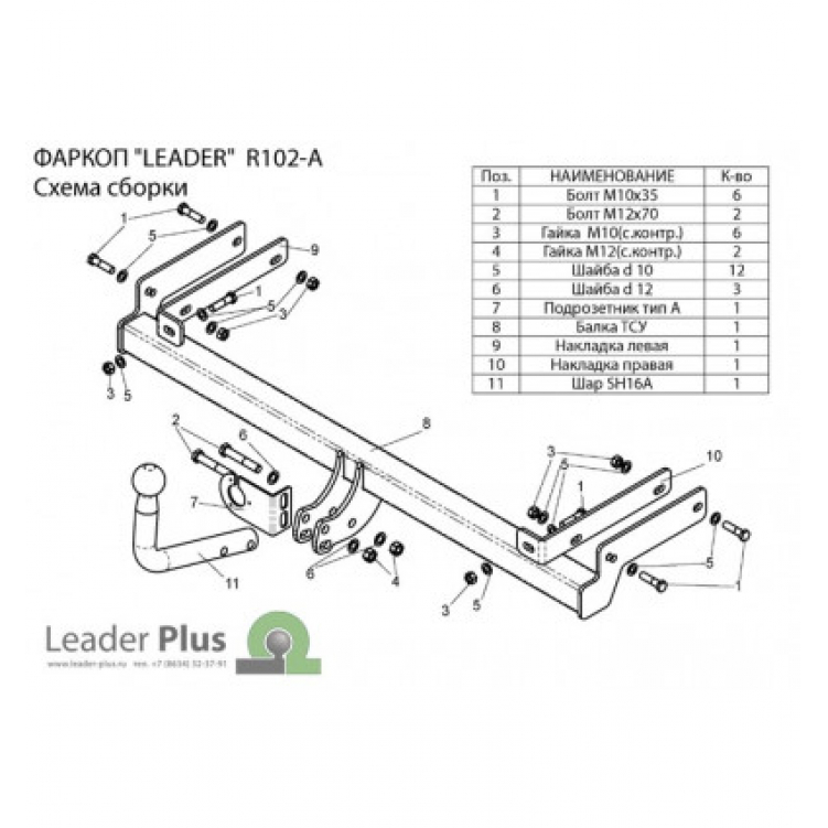 Фаркоп Renaul Symbol седан 2002-2008 - R102-A Лидер-плюс