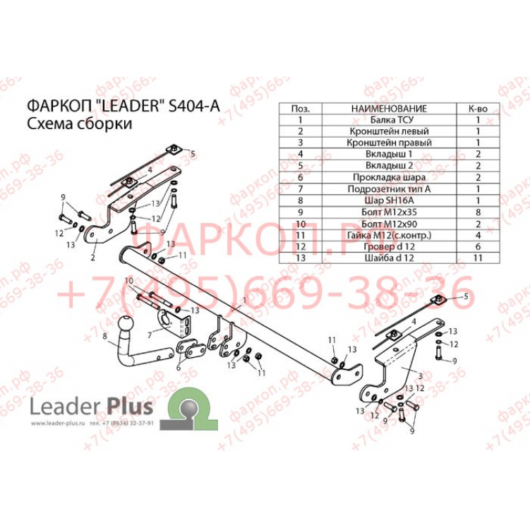 Фаркоп Suzuki SX4 2006-2013 - S404-A Лидер-плюс