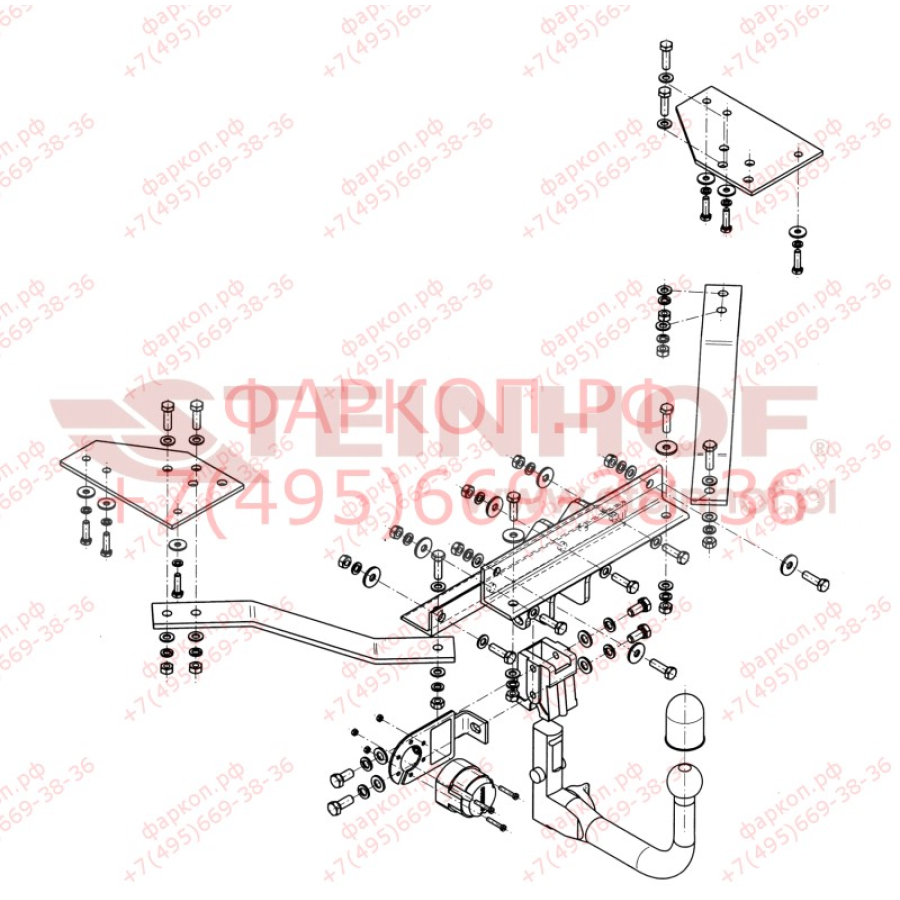 Фаркоп на Volvo S40 седан 2004-2012, Volvo V50 универсал 2004-2012. Требуется подрезка бампера. Тип шара: AV (вертикальное быстросъемное крепление шара на ключе). Нагрузки: 1600/75 кг, масса фаркопа 18,1 кг