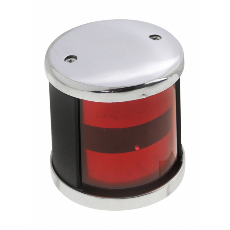Левый отличительный — красный, сектор освещения 10 румбов, освещает дугу горизонта от направления прямо по носу до двух румбов влево позади траверза.