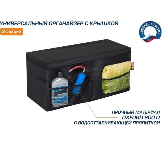 Органайзер в багажник автомобиля, AutoFlex, 2 секции, складной, с крышкой (90112) Rival из категории: Органайзеры
