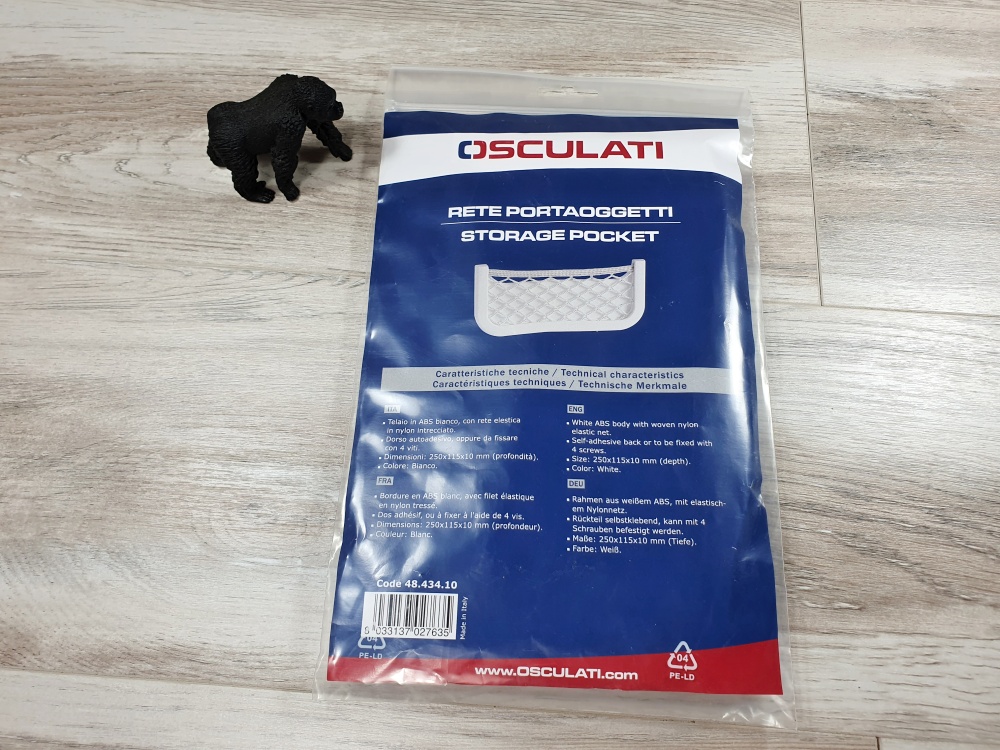 Рама из белого Абс-пластика с эластичной сеткой из плетеного нейлона. Крепится на самоклеящуюся тыльную часть либо посредством четырех шурупов.