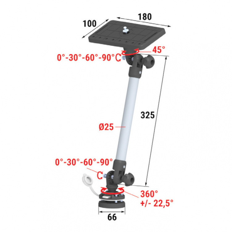 Площадка на палубу быстросъемная с удлинителем используется для монтажа различного дополнительного оборудования (эхолоты, фото-видеоаппаратура и другие устройства). Площадка сконструирована с учетом, расположением крепежных отверстий большинства видов оборудования. Изготовлена из высокопрочного полиамида.