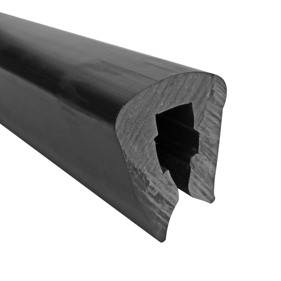 Привальный брус Т167 поставляется на отрез по метрам, либо в бухтах по 20 и 25 метров (обращайте внимание на названия). Ширина профиля 49 мм, высота– 58.8 мм, а внутренний размер – 21 мм. Монтаж изделия производится на готовую направляющую, брус крепится как на прямые, так и изогнутые направляющие.