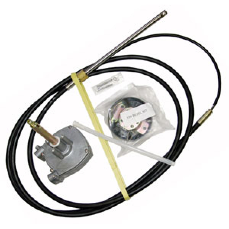 В набор дистанции на лодочный мотор входит рулевой редуктор модели Т71, оснащённый планетарной передачей с возможностью полной перекладки руля за 3 1/2 оборота, рулевой трос c шагом длины 30,5 см и необходимые крепёжные элементы. Длина рулевого троса определяется как длина рубашки плюс 56 см. Минимальный радиус изгиба троса 200 мм. Руль для лодки в комплект поставки не входит и приобретается дополнительно.