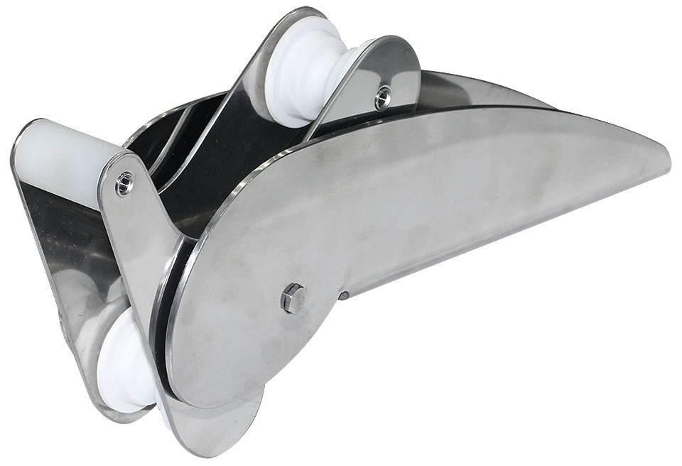 Роульс из полированной нержавеющей стали. Снабжен коромыслом, облегчающим спуск и подъем якоря. Пригоден для всех типов безштоковых якорей весом до 15 кг.