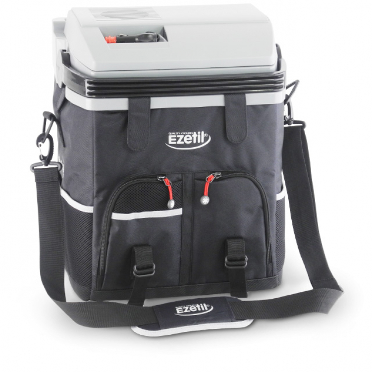Автомобильный холодильник оснащен съемным плечевым ремнем;