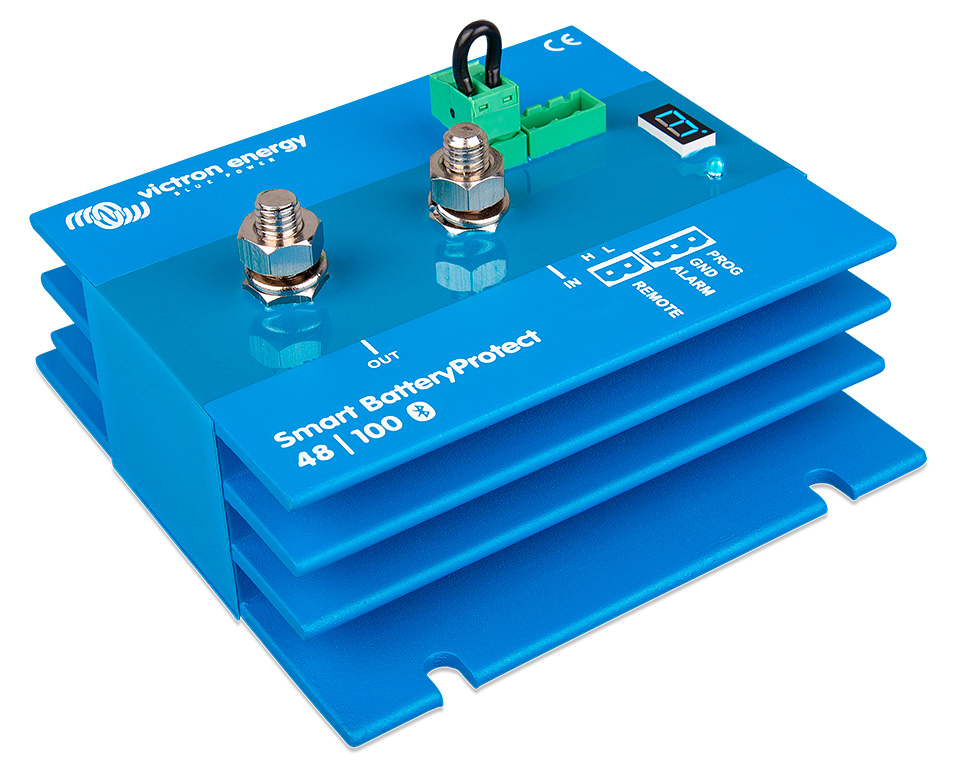 Устройства для защиты аккумуляторных батарей от чрезмерного разряда. Серия Smart Battery Protect отличается от серии Battery Protect наличием возможности программировать напряжение отключения со смартфона через Bluetooth (возможность программирования на корпусе устройство также имеется). Иные функции - те же. Устройства отключают нагрузку при достижении напряжения аккумуляторной батареи уровня, заданного пользователем, предохраняя, таким образом, батарею от повреждения, вызванного глубоким разрядом и(или) сохраняя в ней заряд, достаточный для запуска двигателя. Уровень напряжения отключения отображается на дисплее. Совместимы как с традиционными свинцово-кислотными, так и с литиевыми батареями. Отличаются чрезвычайно низким собственным энергопотреблением. Обеспечивают также защиту от перенапряжения - нагрузка будет автоматически отключена если напряжение на батарее по каким-то причинам поднимется до 16 В или 32 В (при номинале 12 В или 24 В). Возможность подключения световой или звуковой сигнализации о падении напряжения ниже заданного уровня (имеет 12-секундную задержку, таким образом кратковременное падение напряжения во время запуска двигателя не приведет к срабатыванию сигнализации). 1,5-минутная задержка отключения нагрузки для предотвращения ложных срабатываний.