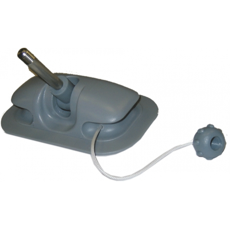Уключина пластмассовая с поворотной осью из нержавеющей стали для установки на баллонах надувных лодок. Предусмотрена возможность крепления тросового леера. Серого цвета.
