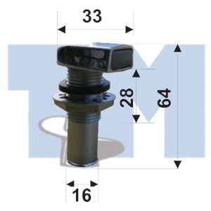 Палубная вентиляционная горловина из хромированной стали с прямоточным патрубком под шланг Ø16мм