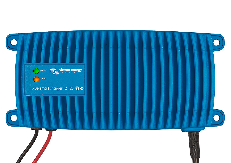 Полностью водонепроницаемые (IP67) автоматические зарядные устройства с одним зарядным выходом. 5-стадийный алгоритм заряда. Возможность использования как для разовой зарядки, так и для работы в буферном режиме с целью постоянного поддержания аккумуляторной батереи в работоспособном состоянии (имеет функцию еженедельной подачи повышенного напряжения для борьбы с сульфатацией). Управление и мониторинг осуществляются с помощью смартфона, соединенного с зарядным устройством через Bluetooth (кнопки управления на корпусе устройства отсутствуют для обеспечения полной водонепроницаемости). Позволяют заряжать все основные типы свинцово-кислотных, а также Li-ion и LiFePO4 батарей. Снабжены защитой от переполюсовки, перегрева и короткого замыкания в зарядной цепи. Поставляются с клеммами под крепеж М8. Опционально можно приобрести кабель с быстроразъемными зажимами ("крокодилами", номер для заказа - 10266889).