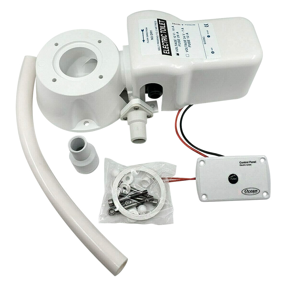 Практически любой яхтенный унитаз с ручной прокачкой можно легко превратить в электрический, если использовать предлагаемый комплект. Конверсии поддаются большинство моделей унитазов со стандартными и широкими чашами производства как «Matromarine», так и сторонних изготовителей, таких как «TMC», «Groco», «Raritan», «PAR», «RM 69», «Aquamarine», «Wilcox Crittenden», «Mansfield» и «Sealand». Главное условие – заменяемая чаша унитаза должна предусматривать крепление четырьмя болтами, расположенными на окружности диаметром 95 мм (3-3/4 дюйма). Помимо помпы и основы в комплект входят все необходимые для установки принадлежности: нержавеющий крепеж, прокладки, шланги.