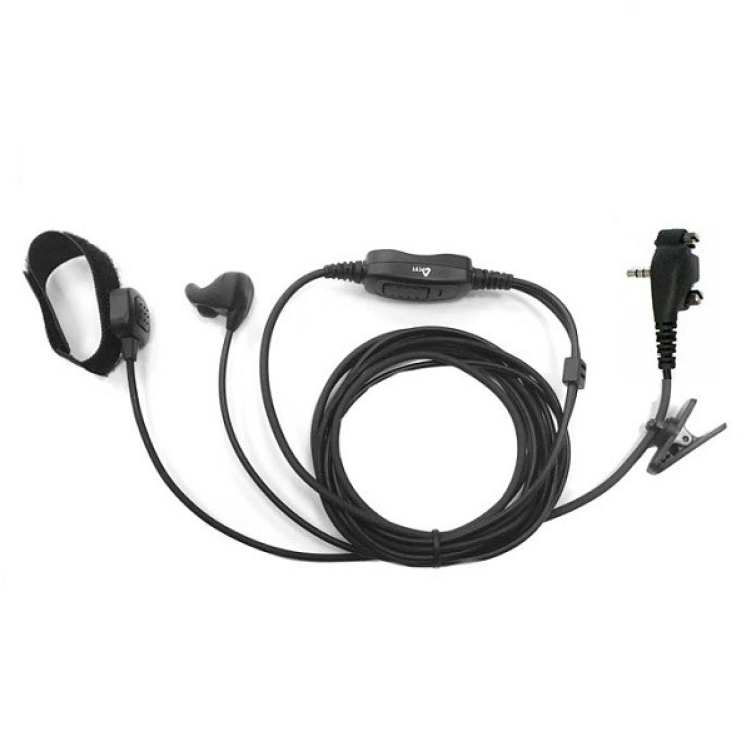 Выносная кнопка PTT гарнитуры Аргут E95B-Y2 крепится на палец с помощью липучки. Микрофон и дублирующая кнопка PTT располагается в удобном месте, дополнительно имея возможность быть закреплённой с помощью перемещающейся прищепки.