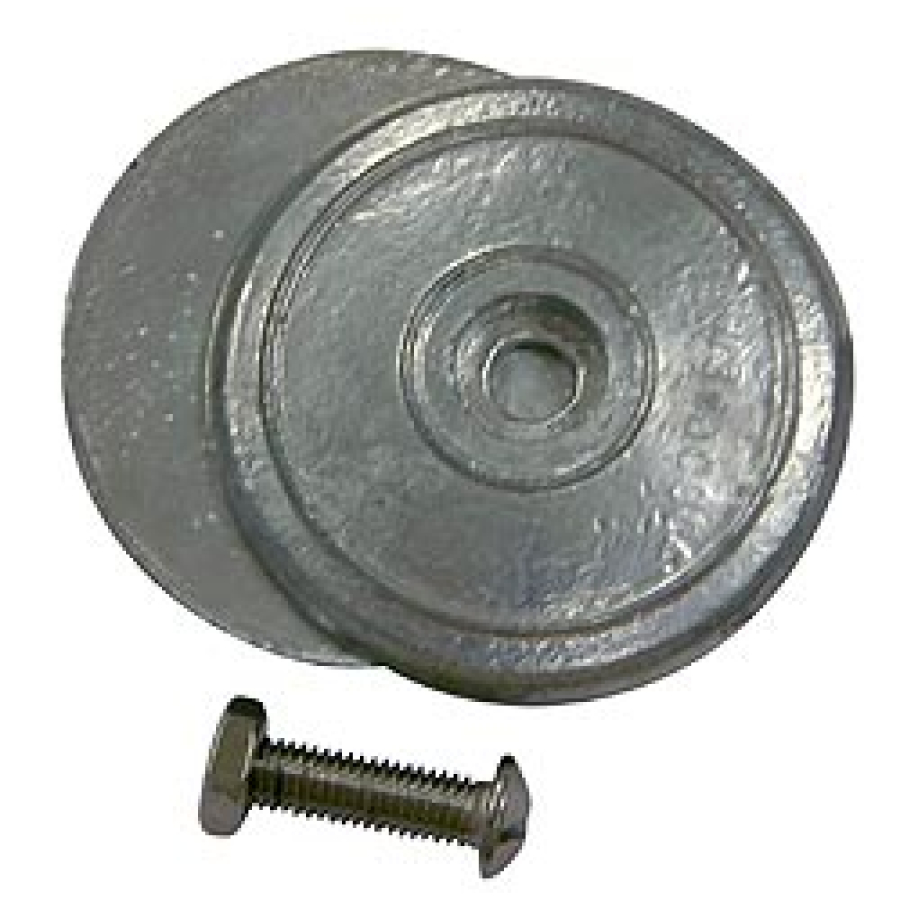 Плоский цинковый анод круглой формы. Состоит из двух половинок, скрепляемых винтом из нержавеющей стали. Применяется для защиты корпуса судна и его механизмов от электролитической коррозии.