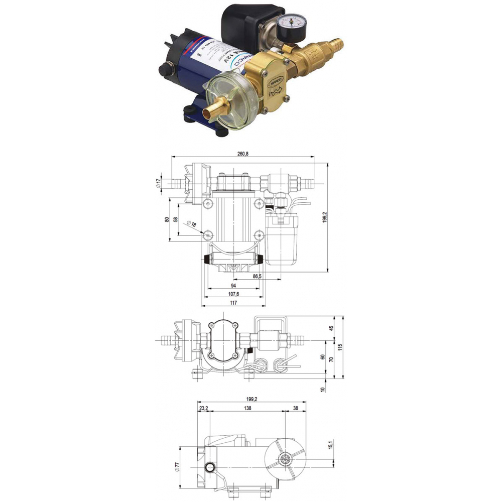 Классическая шестеренчатая электрическая помпа с автоматическим выключателем, манометром, фильтром и невозвратным клапаном. Применяется для создания и поддержания постоянного давления в системах водоснабжения. Не повреждается при кратковременной работе без воды. Для смягчения бросков давления рекомендуется применять совместно с демпфирующей емкостью (напорным баком). Шестеренчатый насос обеспечивает значительный напор (высоту подъема жидкости). Встроенный регулятор позволяет настраивать давление срабатывания помпы. В 2007 году помпы подверглись изменениям. Корпус теперь изготавливается из никелированной бронзы, а шестерни насоса из фторопласта, что значительно снижает шум, возникающий при работе помпы.