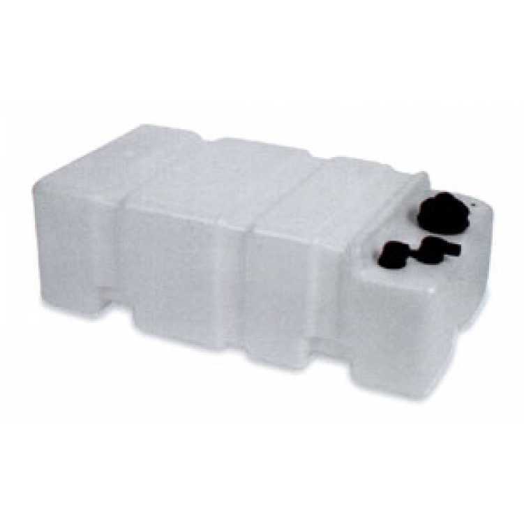 Пластиковый бак для пресной воды. Заливная горловина с резьбовой крышкой. Два патрубка под шланги отбора воды и вентиляции.