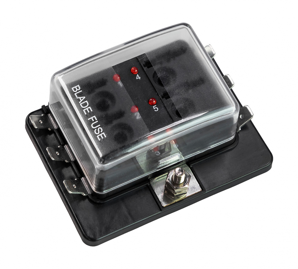 Блок на 6 предохранителей ATP/ATC/ATO с крышкой и индикацией исправности предохранителя.