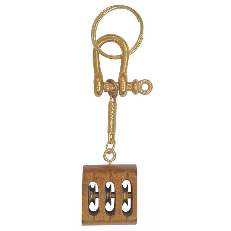 Брелок в виде трехшкивного блока с такелажной скобой и кольцом для ключей.