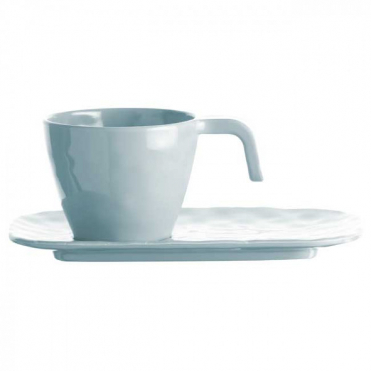 Чашки и блюдца из меламина — стойкого к ударам и царапинам керамоподобного пластика. 12 предметов в наборе (6 чашек, 6 блюдец), цена за набор.