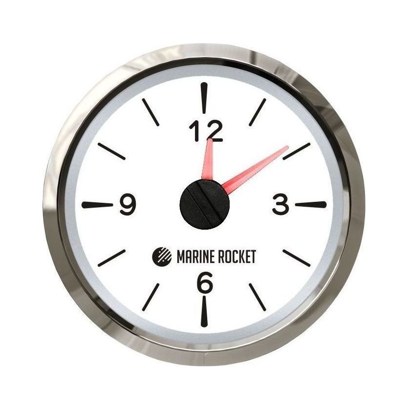 Часы кварцевые, аналоговый белый циферблат, нержавеющий ободок, д. 52 мм, Marine Rocket.