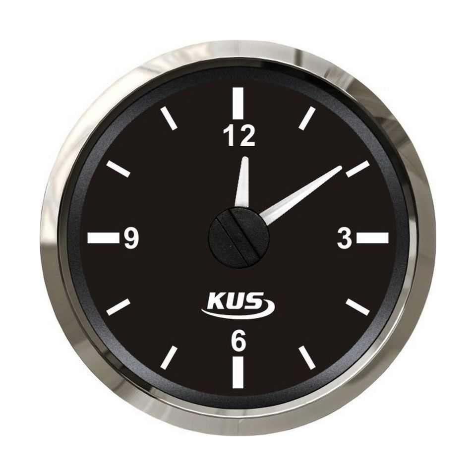 Часы кварцевые, аналоговый черный циферблат, нержавеющий ободок, д. 52 мм.