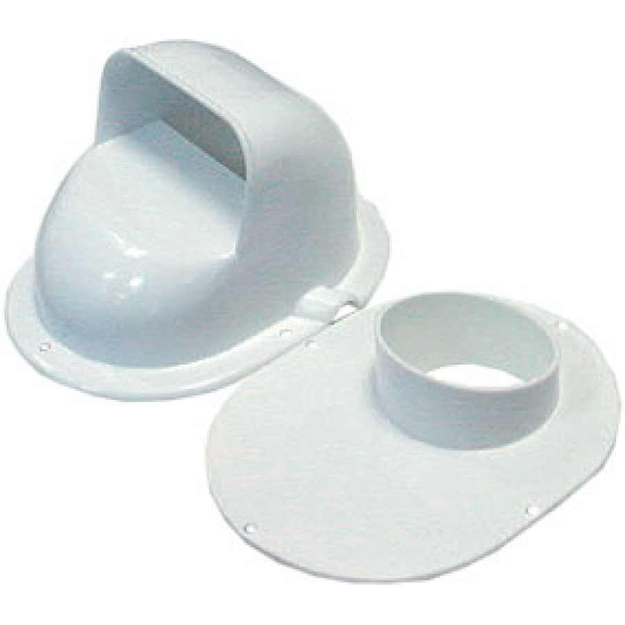 Дефлекторная головка из белого пластика. Имеет «ловушку» для воды со сливом ее наружу. Диаметр наименьшего проходного сечения – 50 мм.