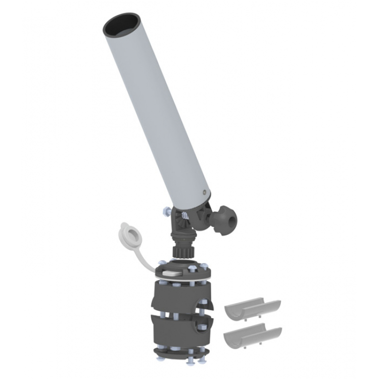 Быстросъемный механизм облегчает установку и снятие держателя с хомута, который способен крепиться на леер диаметром 22, 25 или 32 мм. Материалы изготовления - алюминий и полиамид - гарантируют высокую прочность и долговечность конструкции, а также защиту от коррозии и повреждений в условиях соленой или пресной воды.