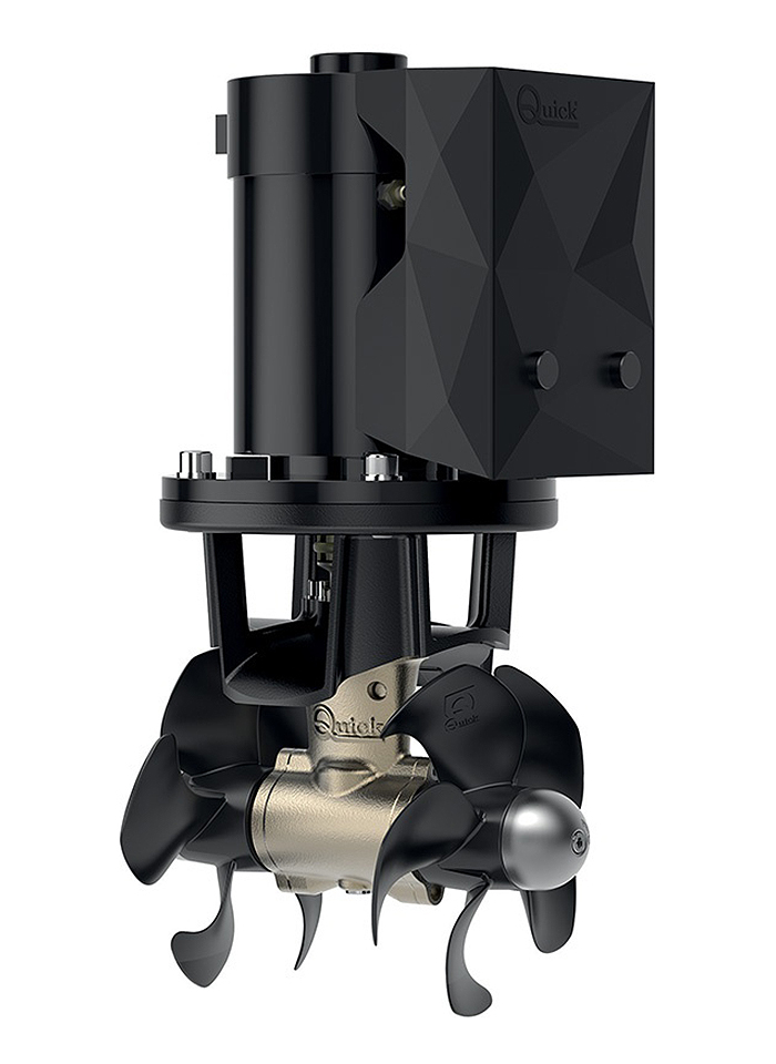 Электрические подруливающие устройства с двумя гребными винтами, обеспечивающими большую эффективность и меньший уровень шума. Легко устанавливаются и не требуют обслуживания. Предусматривают защиту от перегрева двигателя и задержку переключения реверса (при использовании пультов управления или джойстиков «Quick»). Редукторы винтов снабжены эластичными муфтами для снижения нагрузок при реверсировании.