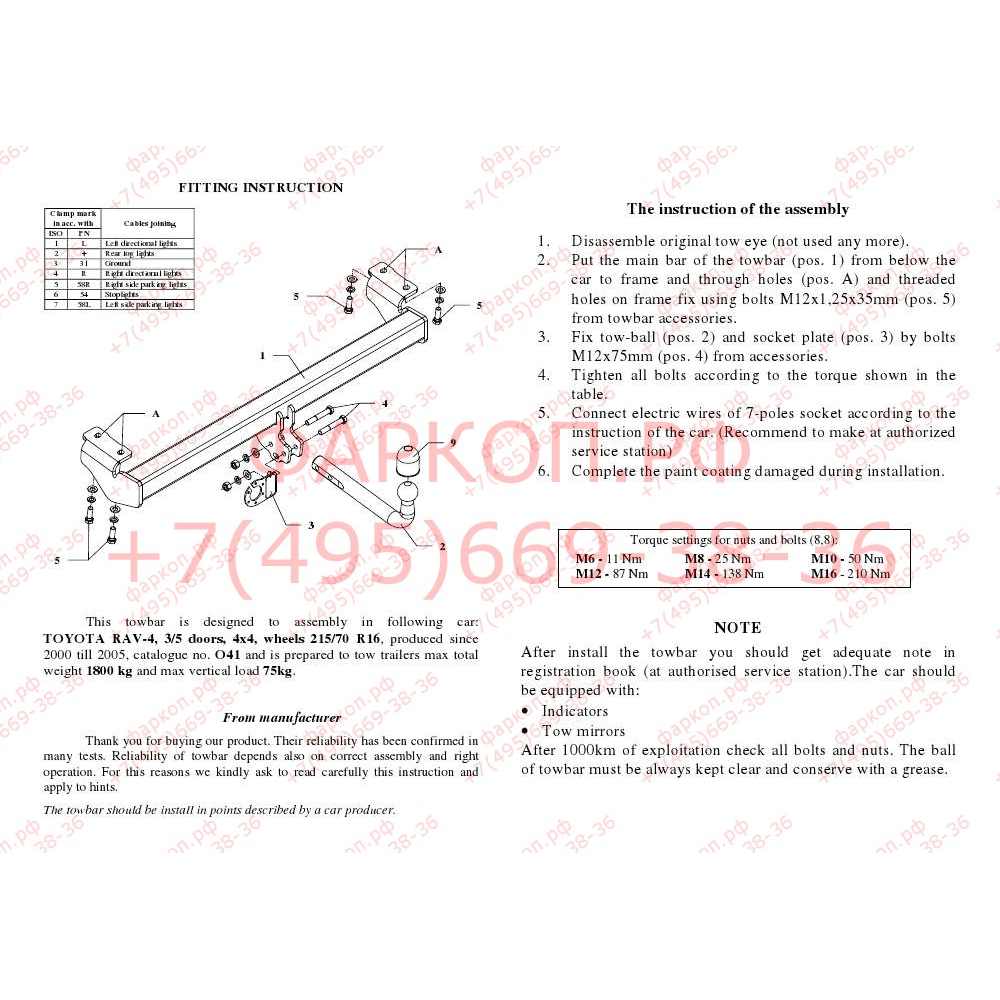Фаркоп для Toyota RAV4 3/5 дверей 2000-2006, Chery Tiggo 2006-2014, Vortex Tingo 2010-2013. Установка фаркопа без снятия и подрезки бампера. Тип шара: A. Нагрузки: 1800/75 кг, масса фаркопа 15,1 кг