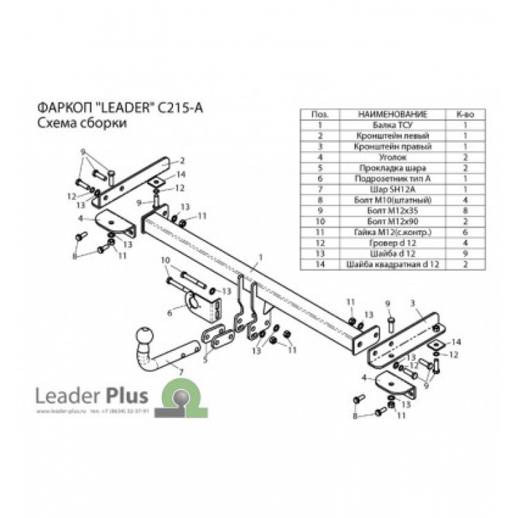 Фаркоп Chevrolet Aveo седан 2012-2015 - C215-A Лидер-плюс