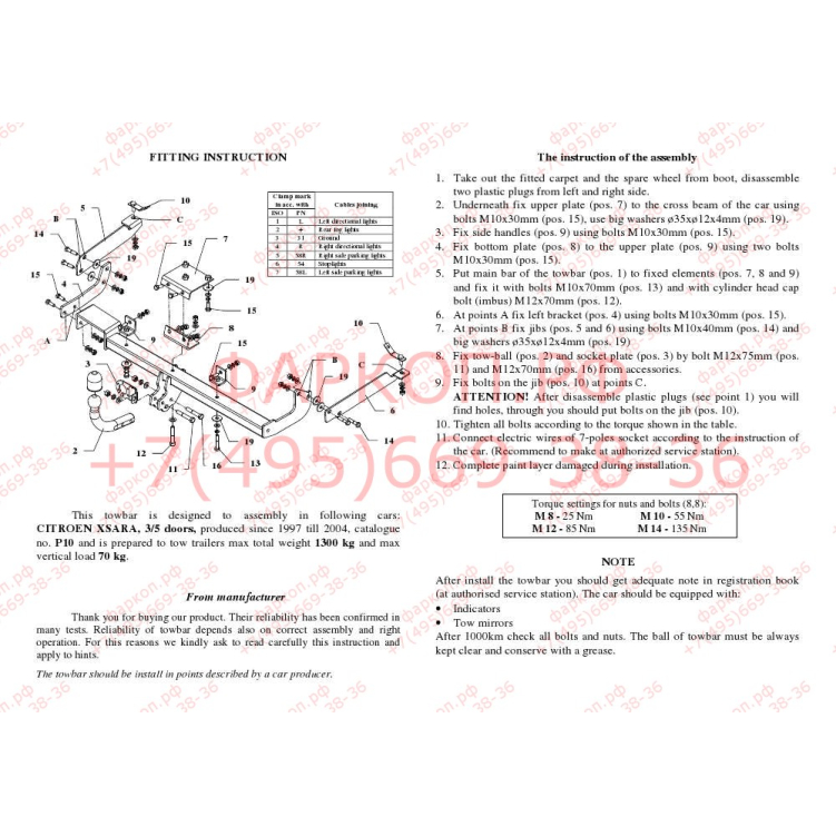Фаркоп для Citroen Xsara хетчбек 3/5 дверей 1997-2005. Установка фаркопа без снятия и подрезки бампера. Тип шара: A. Нагрузки: 1300/70 кг, масса фаркопа 16,9 кг