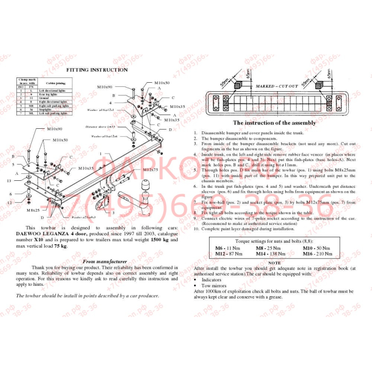 Фаркоп для Daewoo Leganza седан 1997-2003. Без подрезки бампера. Тип шара: A. Нагрузки: 1500/75 кг, масса фаркопа 18,0 кг