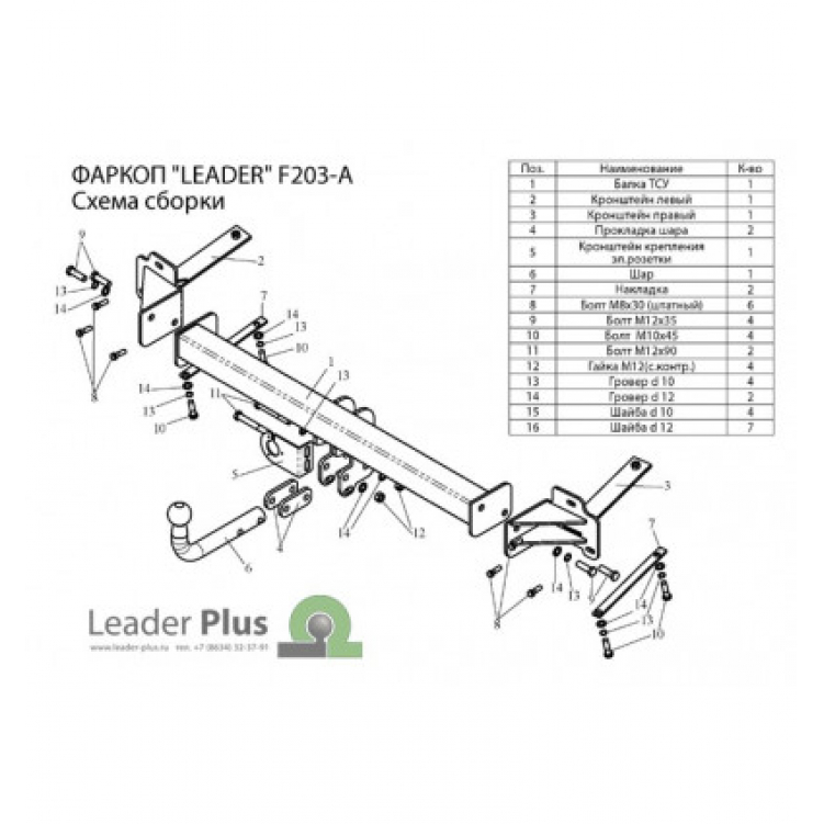 Фаркоп FIAT Doblo 2001-2010 - F203-A Лидер-плюс купить в Москве