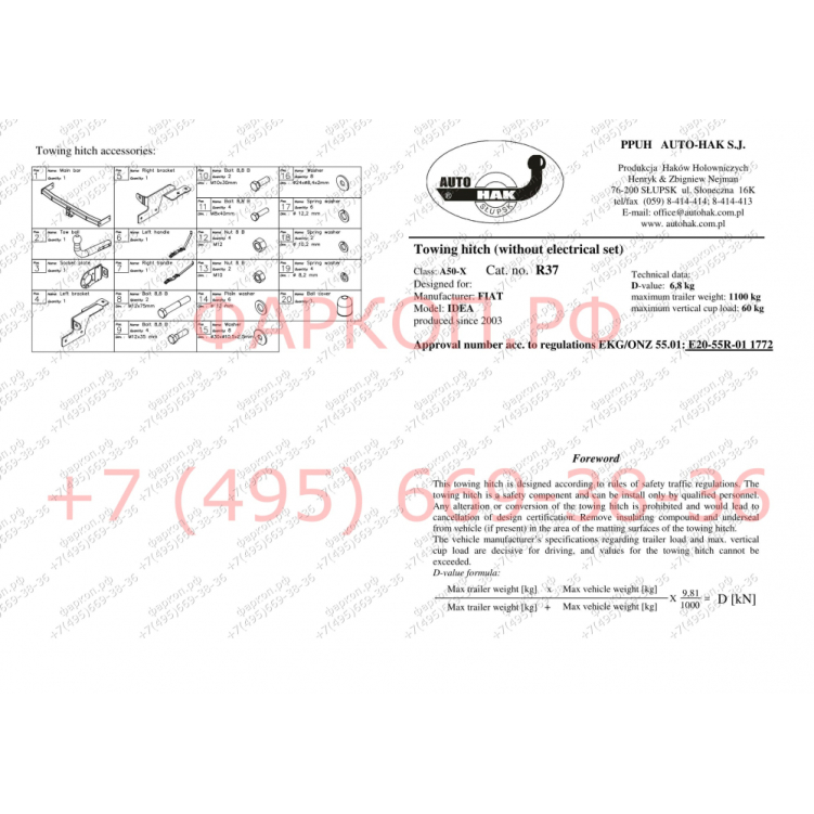 Фаркоп FIAT Idea 2004-2012 - R 37 Auto-Hak купить в Москве