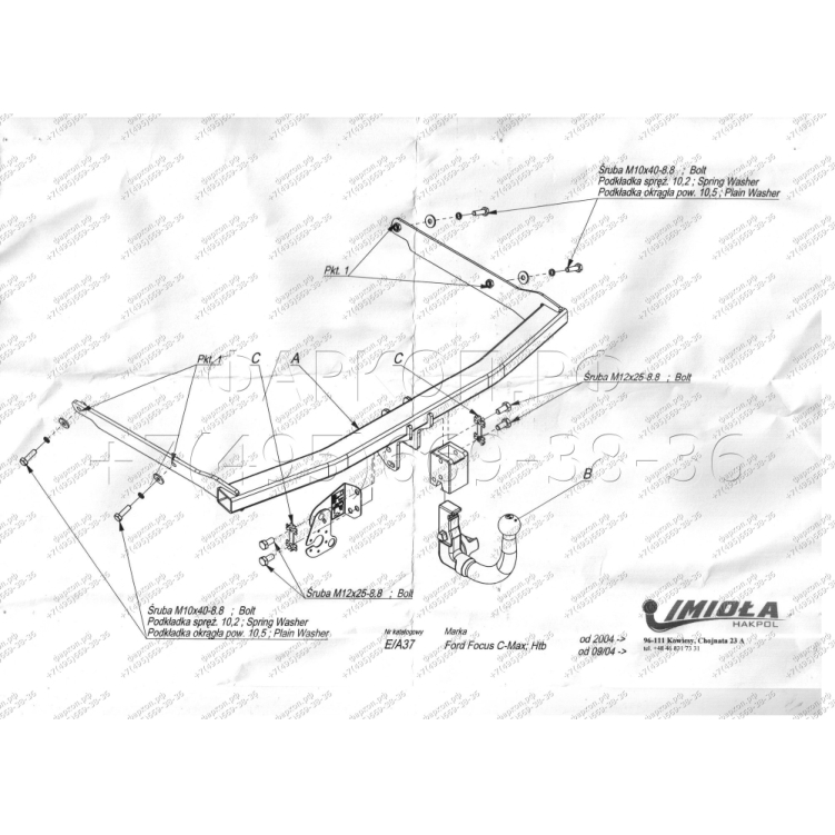 Фаркоп Ford Focus II хетчбек 2004-2011, Focus C-MAX 2004-2019 - E.A37 IMIOLA