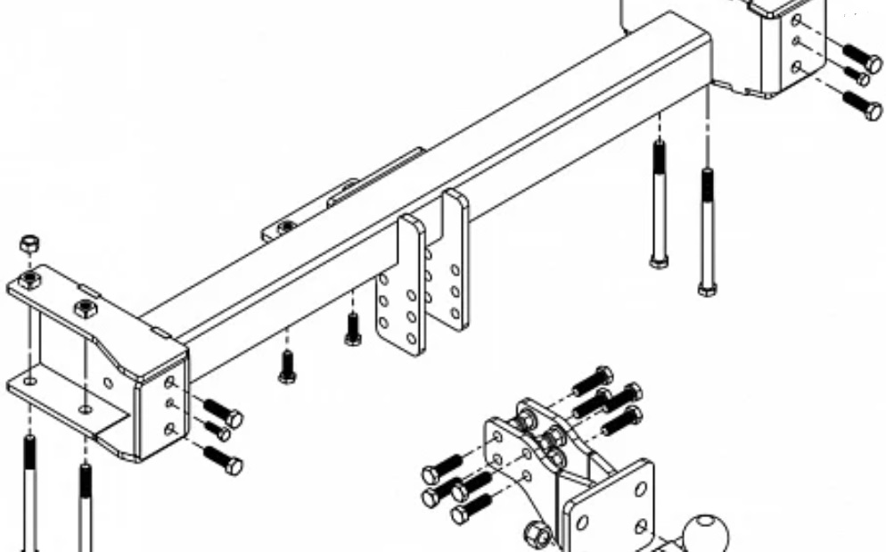 Фаркоп на Hummer H2 2002-2009 фланцевое крепление шара. Невидимый вырез в бампере. Нагрузки 3500/140 кг, масса фаркопа 29 кг