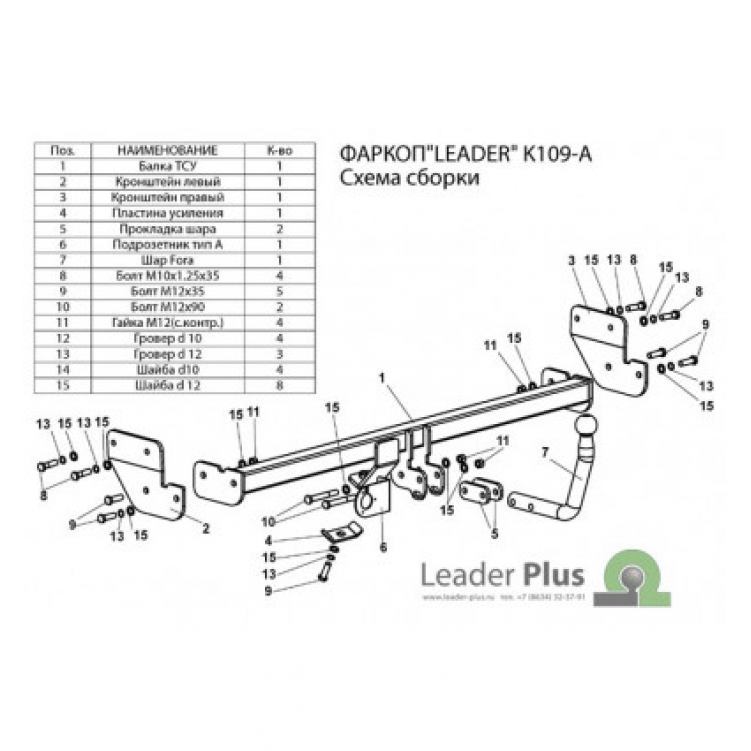 Фаркоп Kia Cerato седан 2009-2013 - K109-A Лидер-плюс