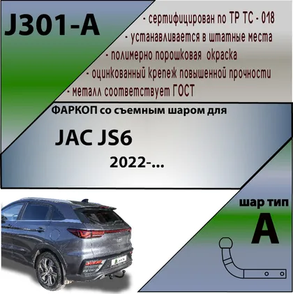 Фаркоп JAC JS6 2022- с условно-съемным креплением шара (на 2 болтах) купить в Москве