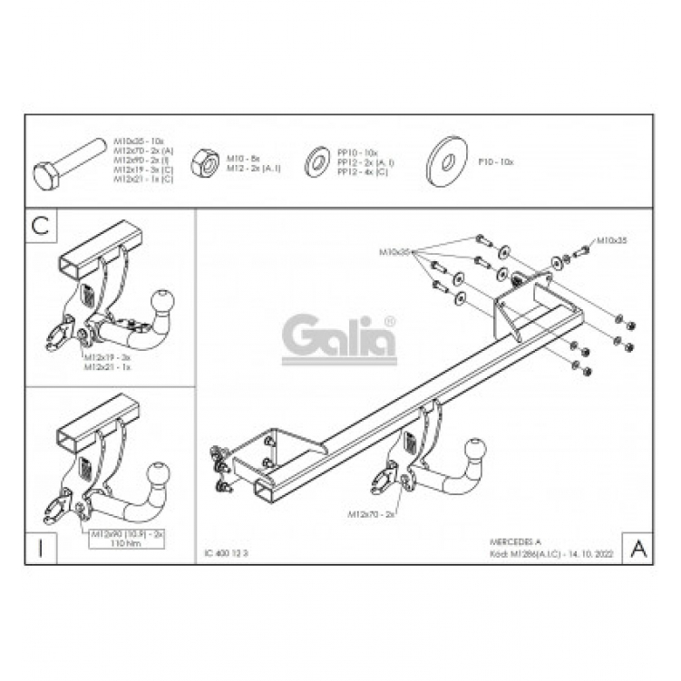Фаркоп Mercedes A-Class w176 2012-2018, B-Class w246 2012-2019 - M128A GALIA