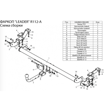 Фаркоп Renault Kangoo 2008-2021, Mercedes Citan 2012-2021 - R112-A Лидер-плюс купить в Москве